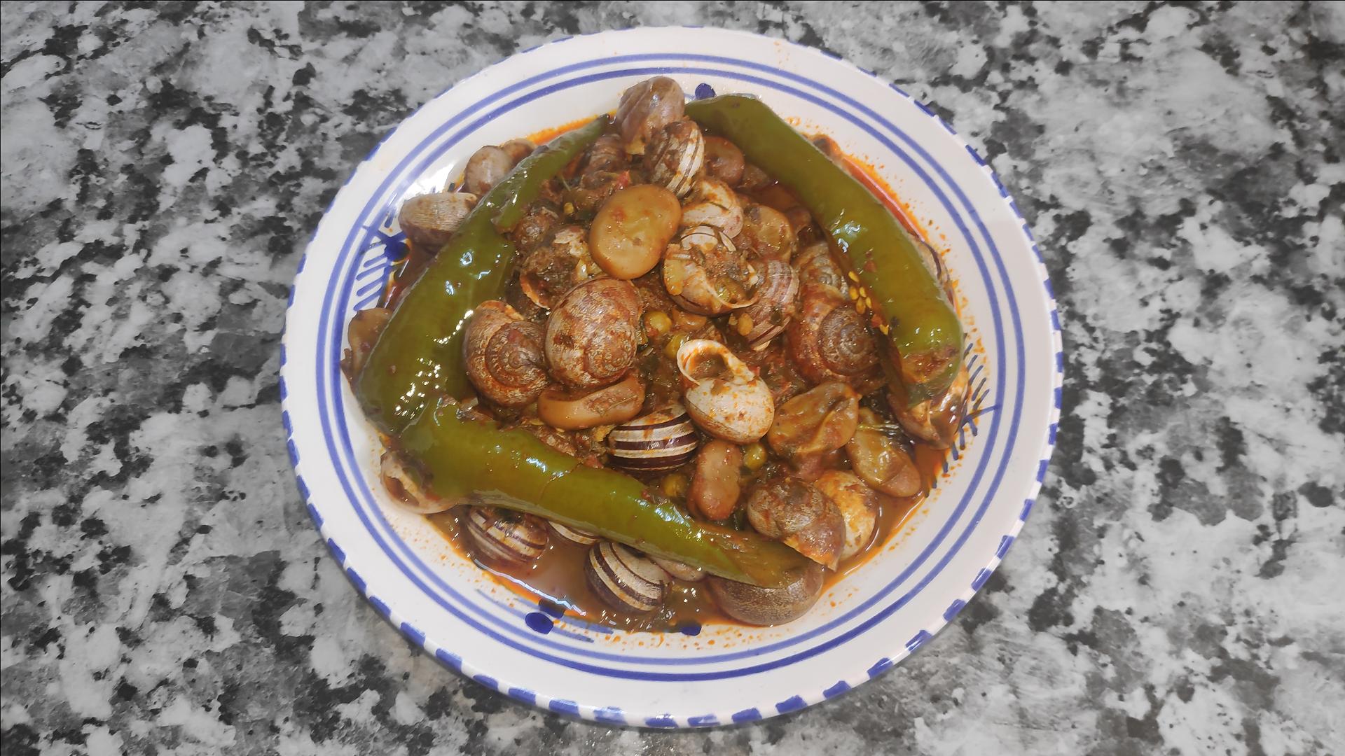 Le ragoût d’escargots est un plat tunisien traditionnel à base d’escargots, de fèves edamame et de petits pois  , mijoté dans une sauce épicée au hrous (mélange d’épices) et à l’huile d’olive. Un voyage culinaire en Tunisie, dans votre assiette ! 🐌🌿